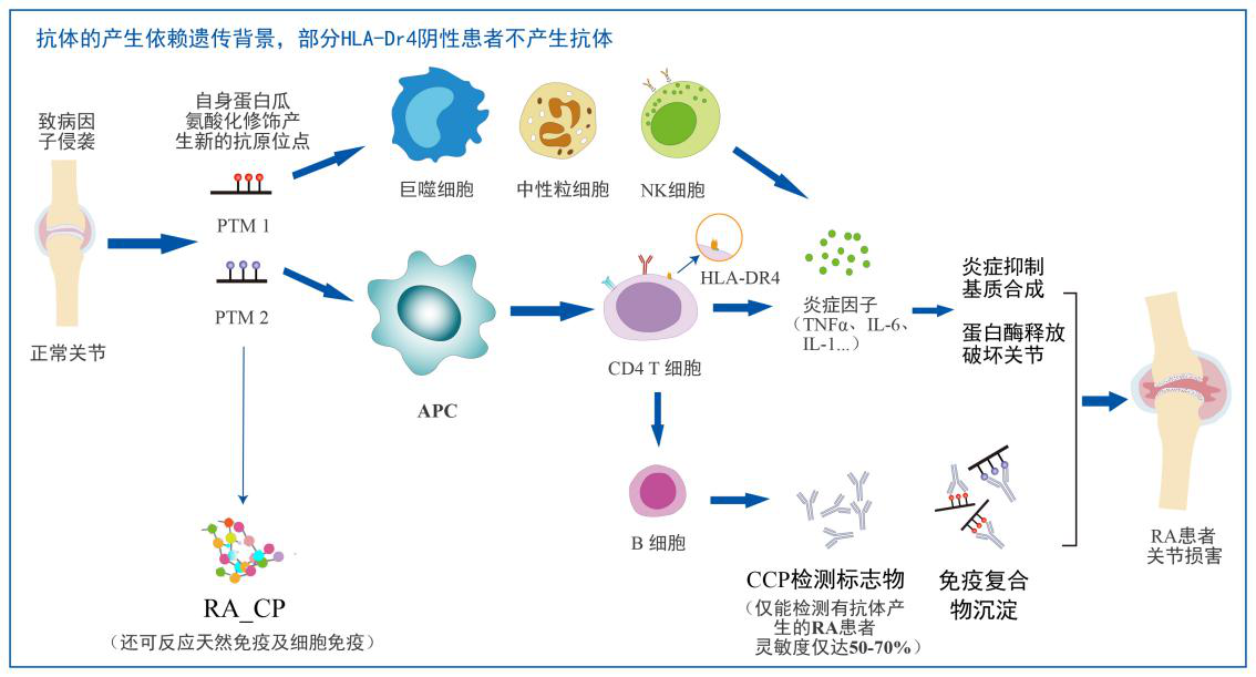 但是,在臨床實(shí)踐過(guò)程中發(fā)現(xiàn)CCP和RF都不能有效地篩查出陽(yáng)性的RA患者,國(guó)際指南推薦的CCP雖有良好的特異性,但約有30-40%的RA患者不能被檢出,現(xiàn)有的臨床檢測(cè)項(xiàng)目指標(biāo)的靈敏度不夠,假陰性率很高,導(dǎo)致臨床漏診,貽誤病情。