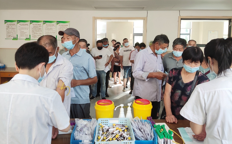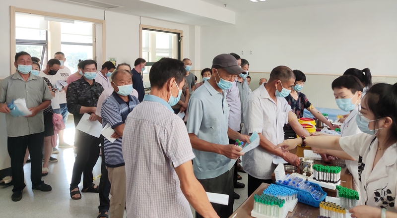 村民們踴躍前來(lái)采血篩查,為共創(chuàng)無(wú)“核”小島美好家園助力
