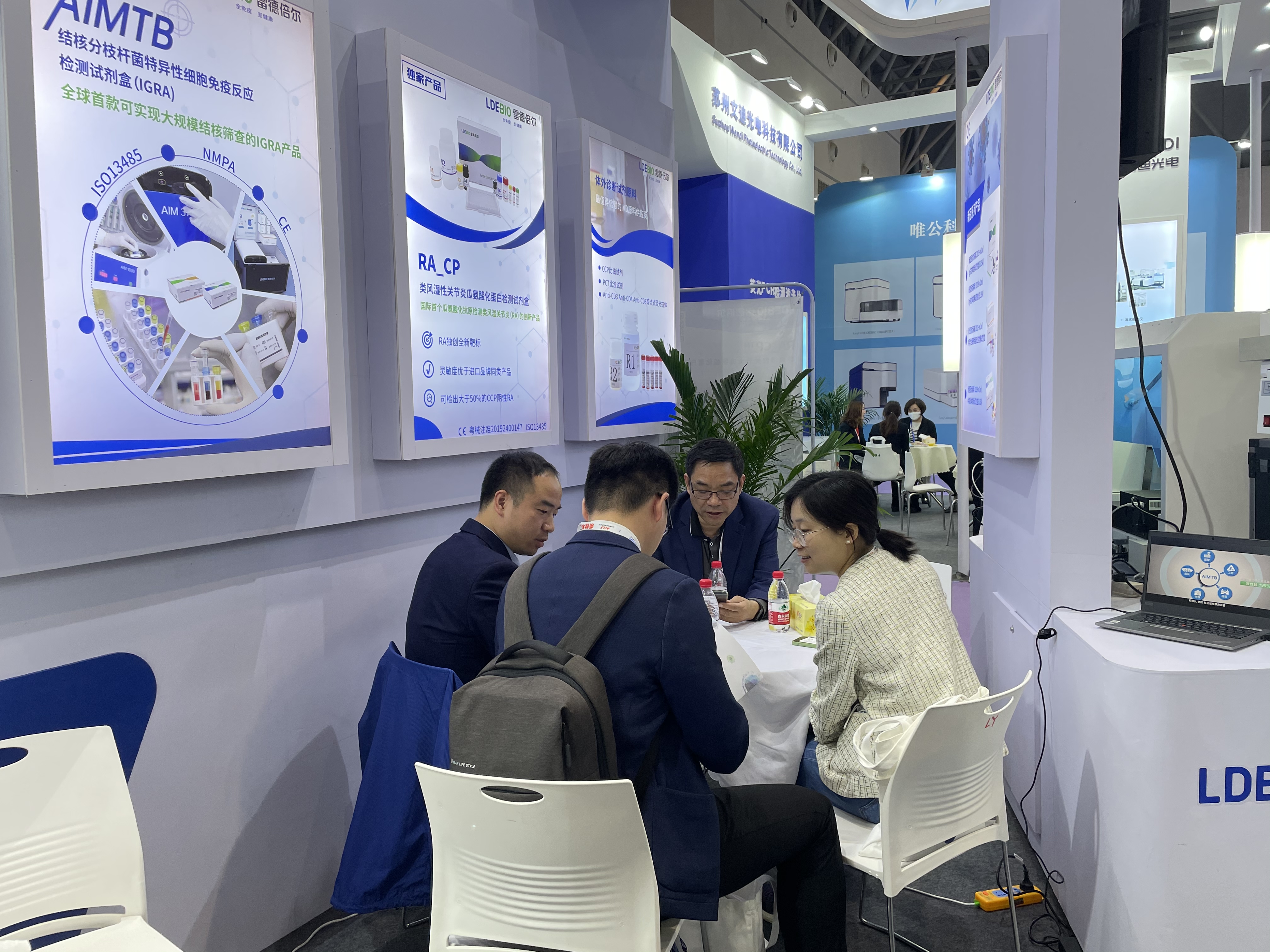 會中,各來賓紛紛駐足我司展臺,與我司研發(fā)專家進(jìn)行產(chǎn)品知識與應(yīng)用的交流,全國首個可移動高通量結(jié)核感染篩查的產(chǎn)品-AIMTB受到與會來賓的一致青睞。2021年全國兩會,十三屆全國政協(xié)委員、教科衛(wèi)體委員會副主任、中國藥學(xué)會理事長孫咸澤在會議中提案:加強結(jié)核病防治。要達(dá)到此目標(biāo),就要對高風(fēng)險人群,甚至全人群進(jìn)行結(jié)核篩查,對高風(fēng)險人群進(jìn)行預(yù)防性治療,這也是中國醫(yī)學(xué)科學(xué)院病原生物學(xué)研究所金奇博士和高磊博士提出的“關(guān)口前移”。雷德結(jié)核感染檢測系統(tǒng)-AIMTB核心原料自研自產(chǎn),操作簡單,可進(jìn)行活動性結(jié)核的輔助診斷及潛伏結(jié)核感染篩查,適用于醫(yī)療機(jī)構(gòu)及體檢篩查市場的高通量需求,對于快速加強結(jié)核病防治、加速推進(jìn)預(yù)防性治療具有重要意義。